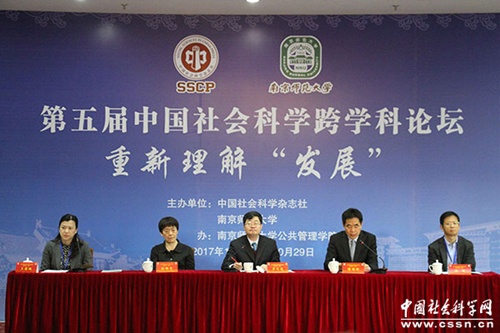 Hosted by Social Sciences in China Press (SSCP) and Nanjing Normal University, the Fifth Chinese Social Sciences Interdisciplinary Forum was held in Nanjing from Oct.28 to 29. Nearly 70 scholars from universities and research institutions including Peking University, Fudan University, Jiangsu Provincial Academy of Social Sciences and Nanjing University exchanged ideas and thoughts on the theme of “Re-comprehending ‘Development.’”