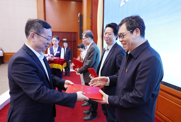 Gao Xiang, CASS president and secretary of the leading Party members’ group at CASS, presents certificates to representatives of the “Most Popular Journals.” Photo: Zhu Gaolei/CSSN