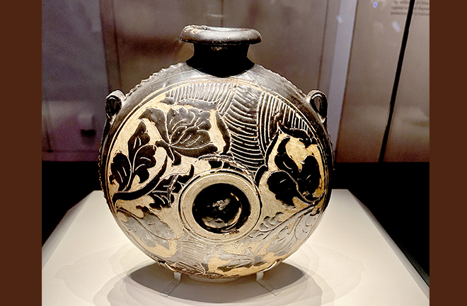 A brown-glazed flask with a carved floral design, a commom Western Xia porcelain vessel with distinctive ethnic features Photo: Ren Guanhong/CSST
