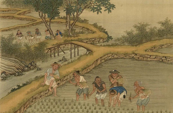FILE PHOTO: A detail of “Farming and Weaving” by the Qing artist Chen Mei