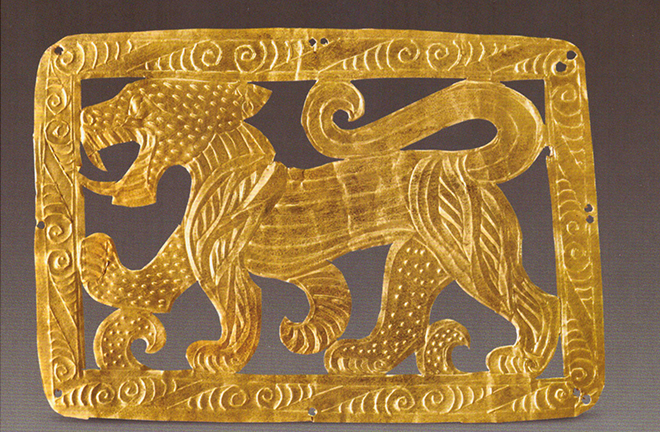A tiger-patterned belt decoration unearthed at Majiayuan cemetery, Gansu Photo: COURTESY OF BAO SHUGUANG