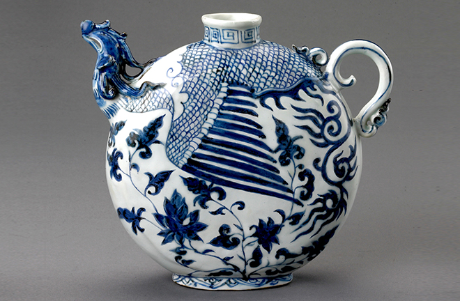 A Yuan blue and white flat ewer with phoenix-headed spout produced in Jingdezhen, Jiangxi Province Photo: Courtesy of YANG HAO