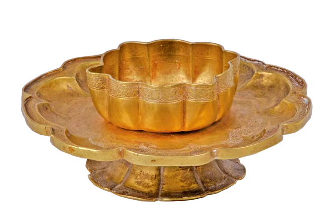 A Xixia gold lotus-shaped cup stand unearthed from an ancient city site in Bayannur, Inner Mongolia Autonomous Region Photo: PROVIDED TO CSST