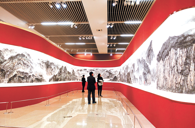 Visitors appreciate the painting 10,000 Miles along the Yangtze River created by many Chinese artists at National Museum of China. Photo: CFP