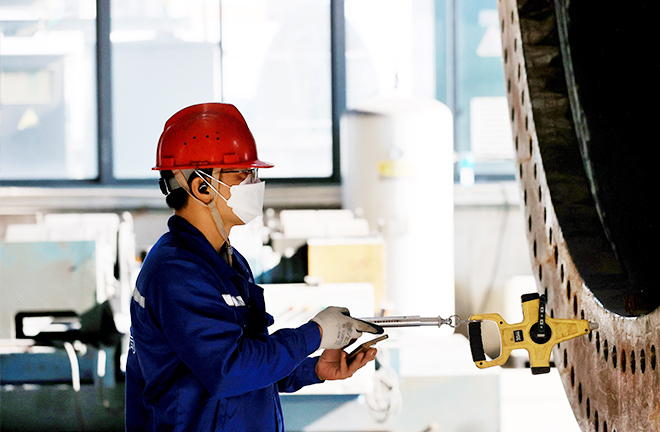 A technician works at the production line of a workshop manufacturing wind turbine tower sections in Liuzhou, Guangxi Zhuang Autonomous Region, on Oct. 27. Photo: IC PHOTO