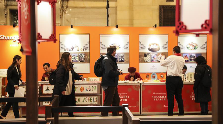 Visitors stroll stalls of the “Shanghai Flavor” intangible cultural heritage fair at the Grand Central Terminal in New York on Jan. 10. The fair was part of the “Happy Chinese New Year - Shanghai Week” held in the city from Jan. 9 to 12. In recent years, China has stepped up efforts to enhance its abilities in international communication. (PHOTO: XINHUA)