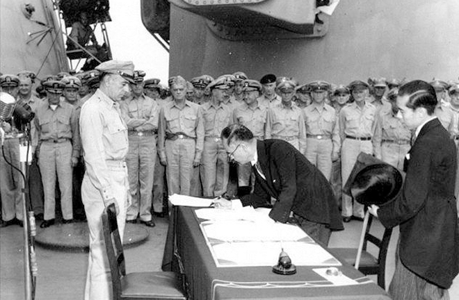 Japanese representatives signed a declaration of surrender on Sep. 2, 1945, marking the complete failure of Japanese militarism and the ultimate victory of the war against fascist states. Photo: FILE