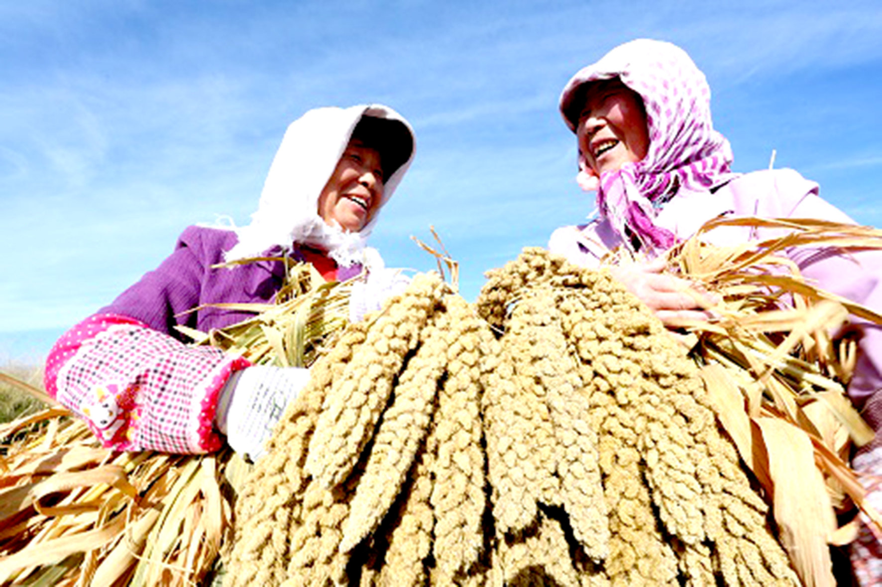 Farmers from Zhangye City, Gansu Province, celebrate a harvest of millet. Photo: XINHUA