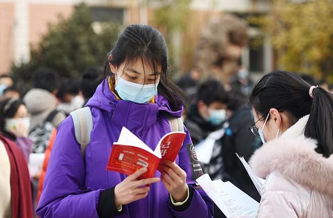Students use every moment to review before taking a major examination at Nanjing No. 29 High School in east China’s Jiangsu Province on Jan. 15, 2022. Photo: CFP