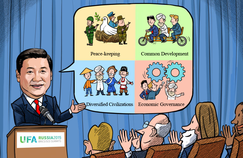 The summit has made new progress in pushing forward the establishment of the BRICS New Development Bank and the Contingent Reserve Arrangement. In addition to activities such as drills, exchanges and training, the SCO has made other advances in security cooperation. It ratified a new cooperation guideline for fighting separatism, terrorism and extremism, set a plan to form an anti-extremism pact and signed a border defense cooperation agreement to establish a legal basis for security cooperation.