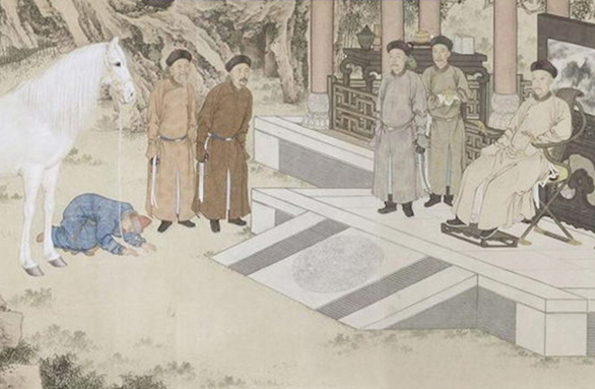 FILE PHOTO: This painting is part of renowned Italian artist Giuseppe Castiglione’s handscroll that portrays the Qianlong Emperor of the Qing Dynasty (1644–1911) receiving tribute horses from Kazakh envoys. The tributary act was soon followed by intensive trade between Qing China and the Kazakh polity.