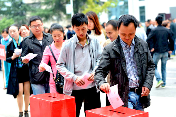 Citizens cast their votes for deputies to the local people’s congress in Baokang County, Hubei Province. Photo: CHINA DAILY