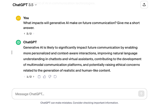 FILE PHOTO: ChatGPT talks about generative AI’s impact on future communication.