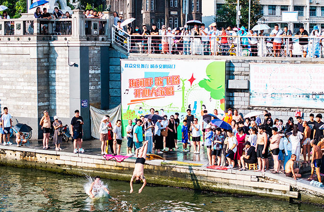 The “Tianjin grandpas diving” phenomenon is far from a solo act. Alongside the grandpas in the spotlight, tourists from other cities, livestream hosts, internet influencers, and even professional divers have contributed to a rich variety of urban performances. Each participant has the potential capacity to shape the development of this urban spectacle.