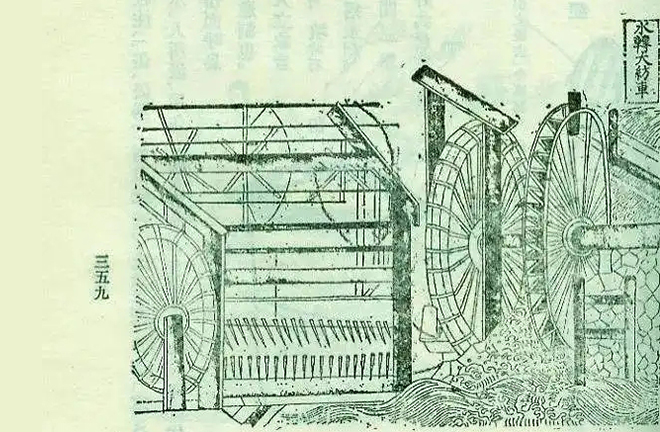 FILE PHOTO: A water-powered spinning wheel painted in Yuan-Dynasty agronomist and inventor Wang Zhen's Nongshu (Book of Agriculture)