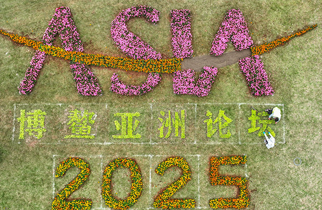 Workers decorate the parterre for the Boao Forum for Asia Annual Conference 2025 on March 16, ahead of the event, in Boao, Hainan Province. Photo: IC PHOTO