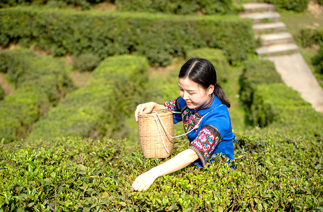 A young tea picker at Mengdong Tea Plantation in Xiushan County, Chongqing Municipality. In 2024, the local government launched the “New Tea Workers Initiative,” offering 500 training sessions to rural young returnees. Photo: IC PHOTO