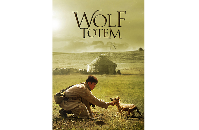 FILE PHOTO: A poster of the movie Wolf Totem, adapted from Jiang Rong’s novel of the same name, a best-selling work in China that narrates the spiritual journey of a Beijing intellectual into the world of the nomadic Mongols, witnessing a culture that highly honors the balance between humanity and nature