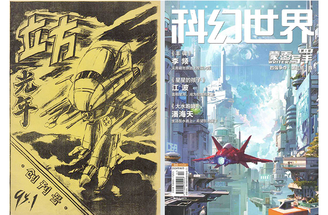 FILE PHOTO: The inaugural issue of Cubic Light-Year from 1995 (left) and the August issue of Science Fiction World from 2024 (right)