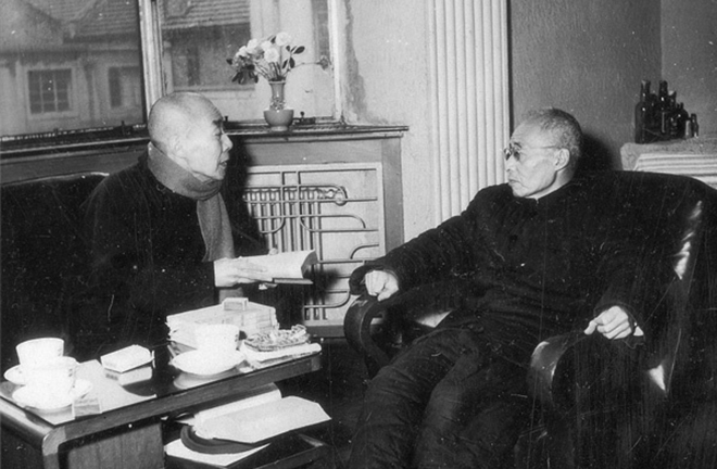 FILE PHOTO: Lyu Simian (left) and Meng Xiancheng (right), the first president of East China Normal University