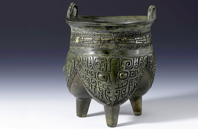 FILE PHOTO: A bronze li vessel with beast-like motifs from the Shang Dynasty, preserved in the Shanghai Museum